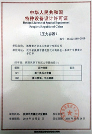 2015年10月28日,抚顺振兴化工工程设计有限公司获得中华人民共和国特种设备设计许可证(压力容器)。证书编号:TS1221168-2019 获准从事D1、D2压力容器设计。